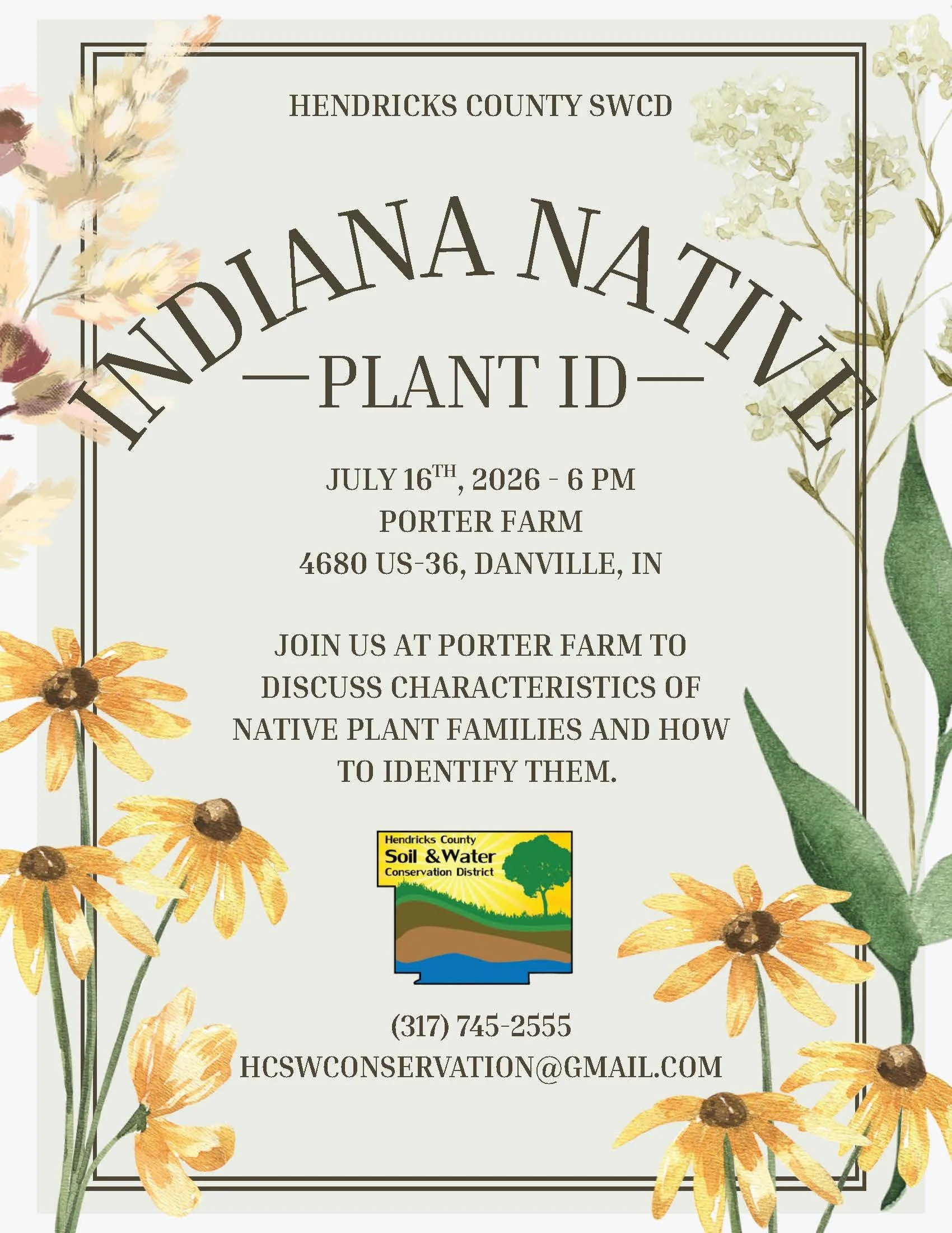 Hendricks County SWCD hosts an annual native plant sale offering 3 gallon containerized trees, native flowers, and grasses. SWCD staff are available to help you with species selection and planting instructions.